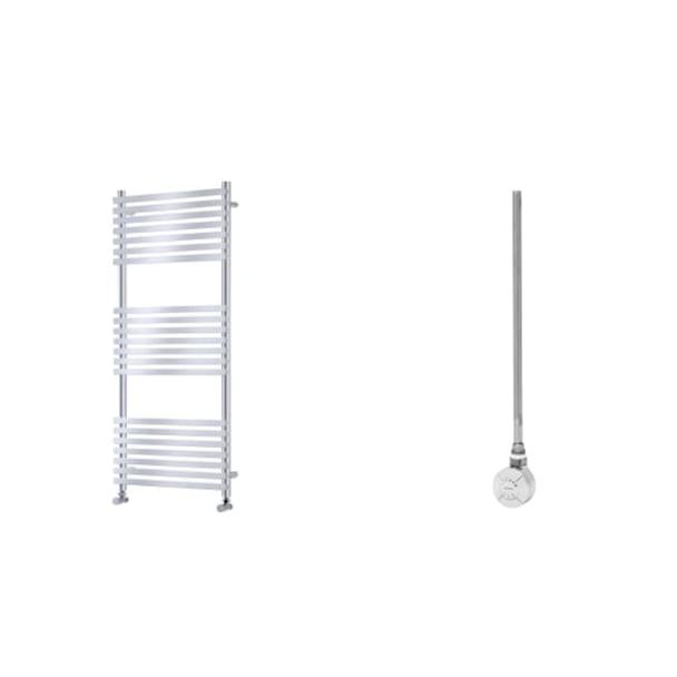 Towelrads Invent Square Chrome Heated Towel Rail Radiator 1186 x 500mm + Towelrads 600W Smart Thermostatic Chrome Element 435mm x 60mm