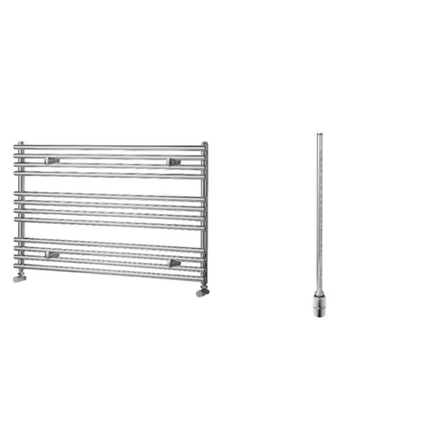Towelrads Liquid Round Horizontal Designer Chrome Towel Radiator 600 x 1000mm + Towelrads 300W Smart Non Thermostatic Chrome Element 435mm x 60mm