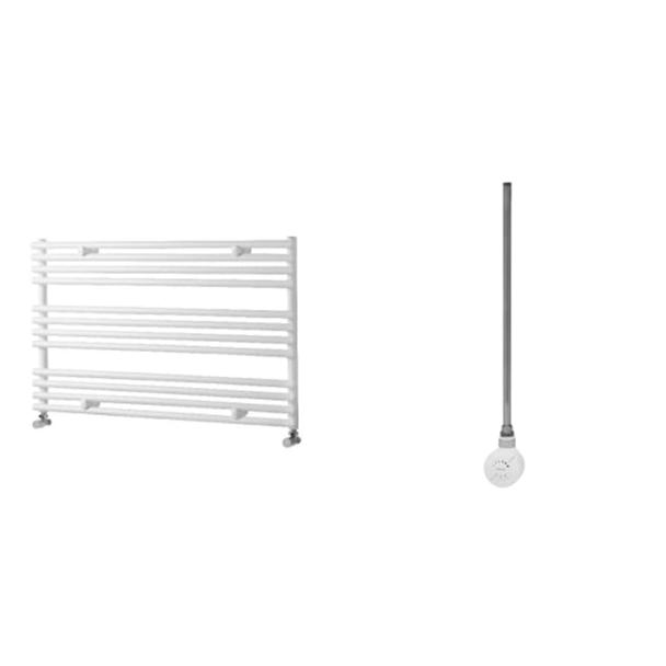 Towelrads Liquid Round Horizontal Designer White Towel Radiator 600 x 1000 mm + Towelrads 1000W Smart Thermostatic White Element 825mm x 60mm