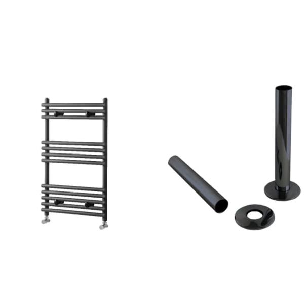 Towelrads Liquid Round Tube Anthracite Heated Towel Rail Radiator 1500 x 500mm + Towelrads Anthracite Pipe Sleeves 130mm
