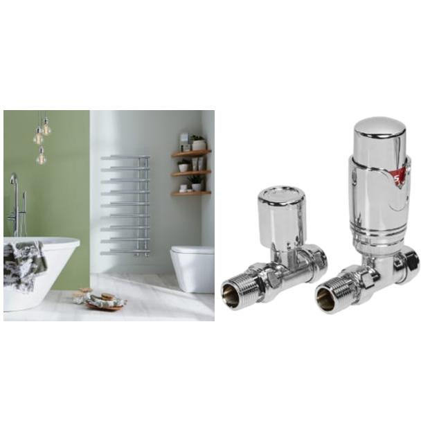 Towelrads Mayfair Chrome Towel Radiator 1245 x 500mm + Towelrads Thermostatic Radiator Valve Chrome