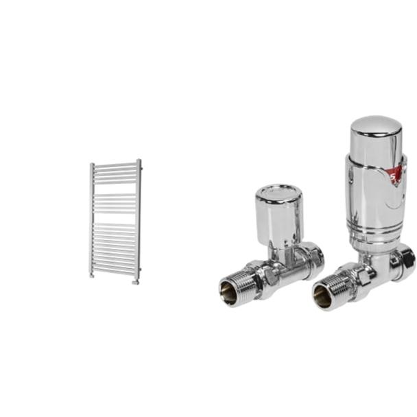Towelrads Square Chrome Towel Radiator 1600 x 600mm + Towelrads Thermostatic Radiator Valve Chrome
