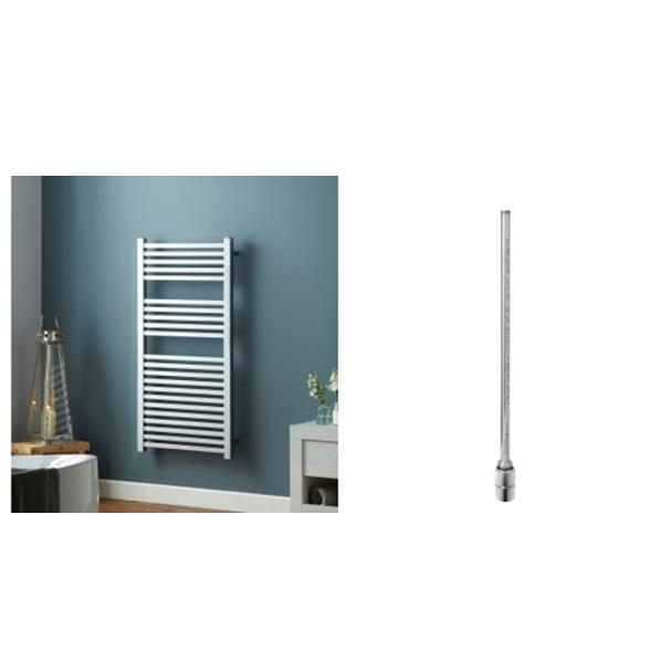 Towelrads Square Chrome Towel Radiator 800mm x 450mm + Towelrads 300W Smart Non Thermostatic Chrome Element 435mm x 60mm