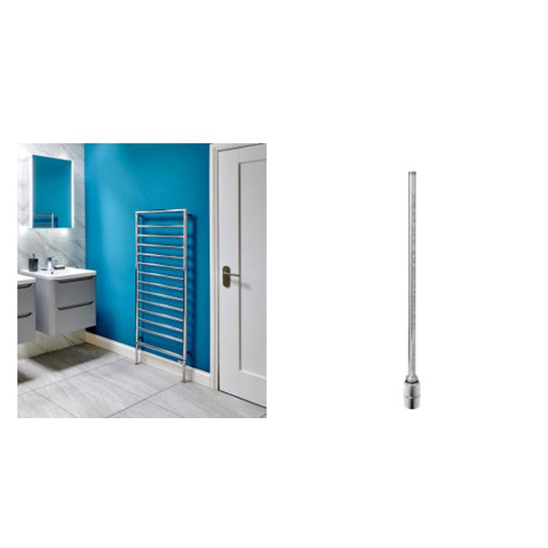 Towelrads Strand Chrome Towel Radiator 1300 x 500mm + Towelrads 600W Smart Non Thermostatic Chrome Element 435mm x 60mm