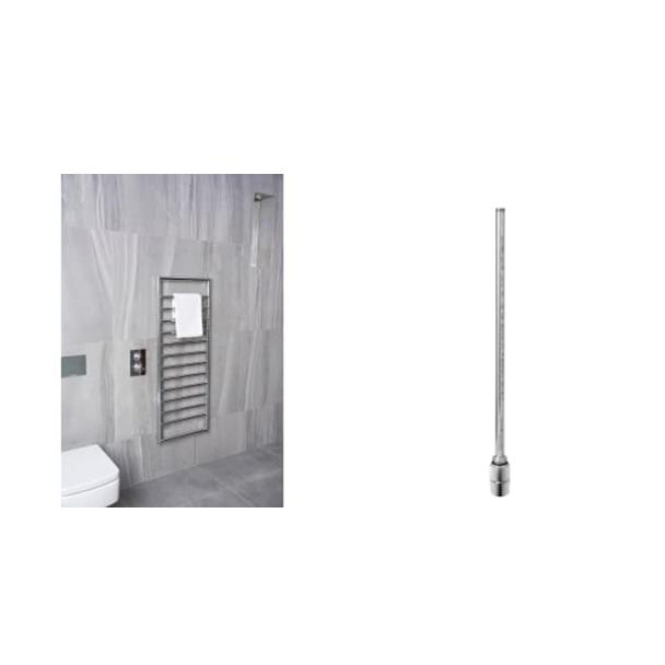 Towelrads Strand Chrome Towel Radiator 900 x 500mm + Towelrads 300W Smart Non Thermostatic Chrome Element 435mm x 60mm