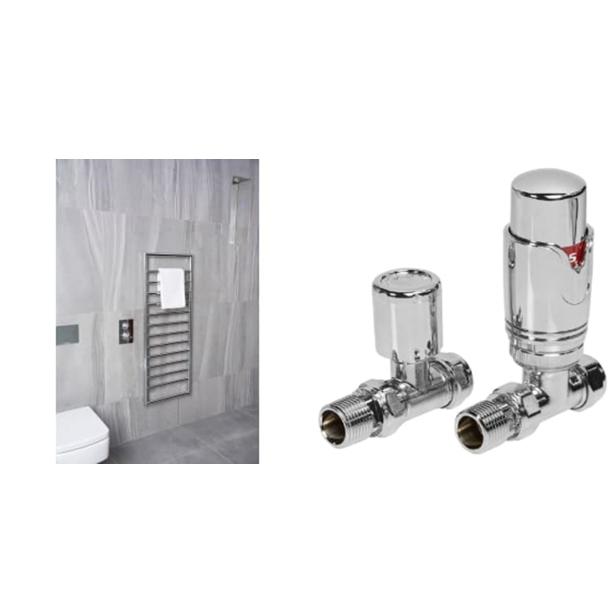 Towelrads Strand Chrome Towel Radiator 900 x 500mm + Towelrads Thermostatic Radiator Valve Chrome