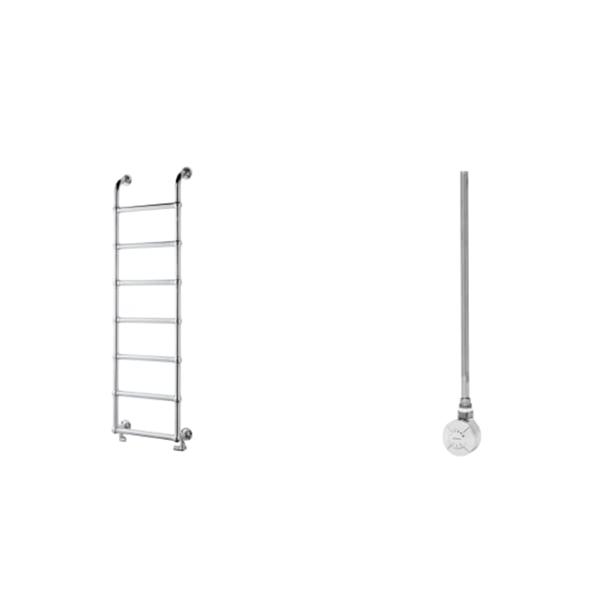 Towelrads Upton Victorian Chrome Towel Radiator 1200 x 500mm + Towelrads 600W Smart Thermostatic Chrome Element 435mm x 60mm