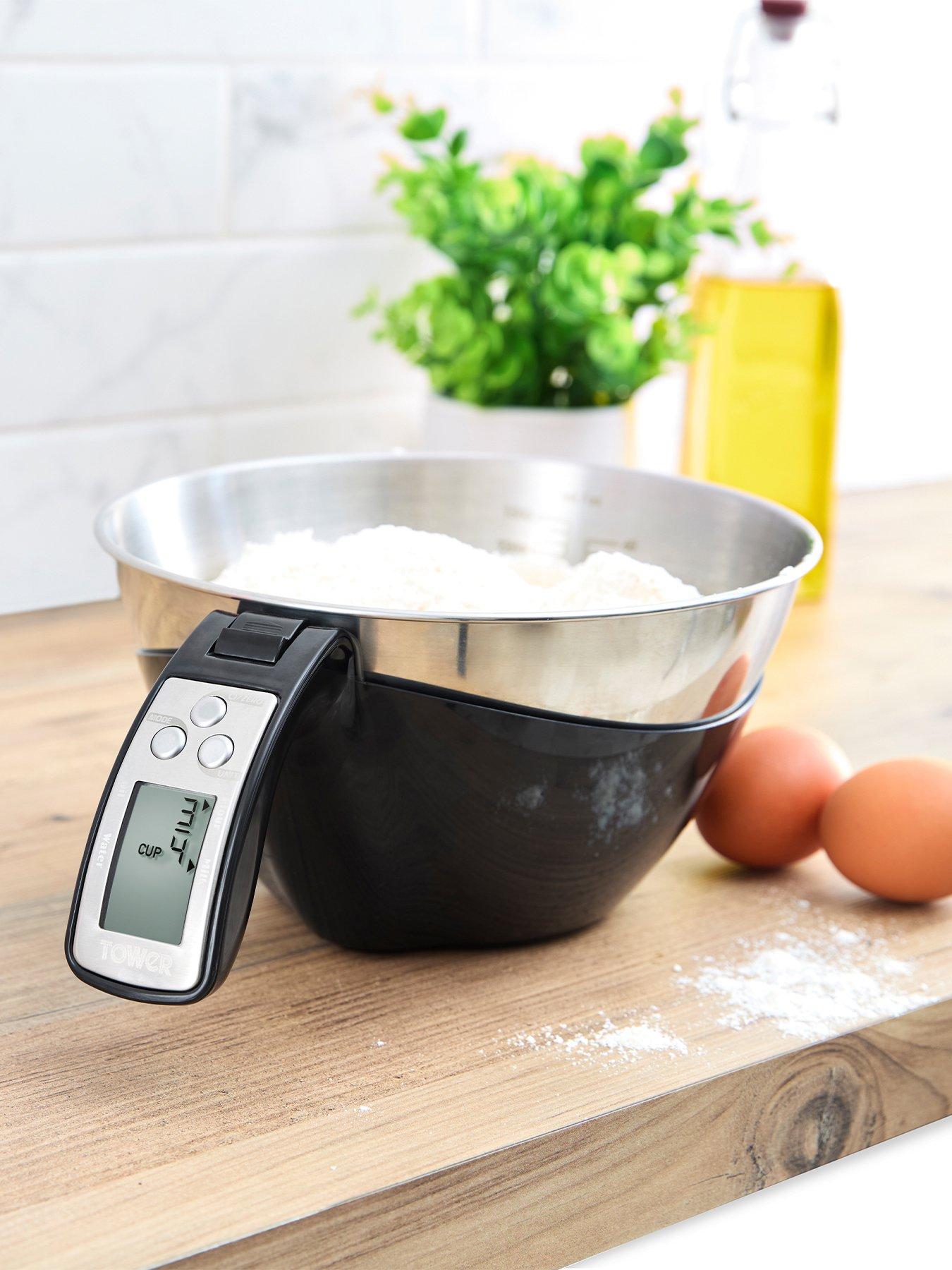 Tower 3-In-1 Digital Jug Scale With 1.5L Bowl, Black Tower'S T876010Blk 3-In-1 Digital Jug Scale Is The Smarter Way To Measure Ingredients At Home. Combining A Jug, Weighing Bowl And Mixing Bowl In One, It Simplifies Prep And Saves Valuable Kitchen Space. With A Generous 1.5L / 5Kg Capacity And Precise To 1G, It Ensures Perfect Accuracy For Both Solids And Liquids. Integrated Volume Guides For Water, Milk, Flour And Oil Eliminate The Need For Conversion Charts, While The Tare Function Lets You Add And Weigh Ingredients Step By Step. A Quick-Release Stainless Steel Bowl Detaches For Dishwasher Cleaning, With The Base Wiping Clean In Seconds. Auto On/Off Makes Operation Seamless, And Smart Alerts For Overload And Low Battery Provide Reliability With Every Use. Dishwasher Safe Stainless Steel Bowl Durable Stainless Steel Bowl With Integrated Volume Guides Lets You Measure Liquids And Dry Ingredients Directly, Then Detach For Quick, Dishwasher-Safe Cleaning 5Kg/1.5L Capacity Weigh Solids Up To 5Kg Or Liquids Up To 1.5L With Precise 1G Increments, Giving You Accurate Results For Everything From Baking To Everyday Meal Prep Tare & Convertible Weight & Volume Switch Between Grams, Ounces And Millilitres, And Use The Tare Function To Zero Between Ingredients. Auto On/Off Ensures Simple, Efficient Operation Smart Design & Alerts Quick-Release Bowl Is Easy To Clean, The Base Wipes Down In Seconds, And Overload/Low-Battery Indicators Provide Consistent, Reliable Performance 2 Year Guarantee Trusted Tower Quality With A 1 Year Guarantee & Optional 1 Year Extension, Subject To Product Registration Online Depth: 21.3 Cm Height: 12 Cm Width: 29 Cm