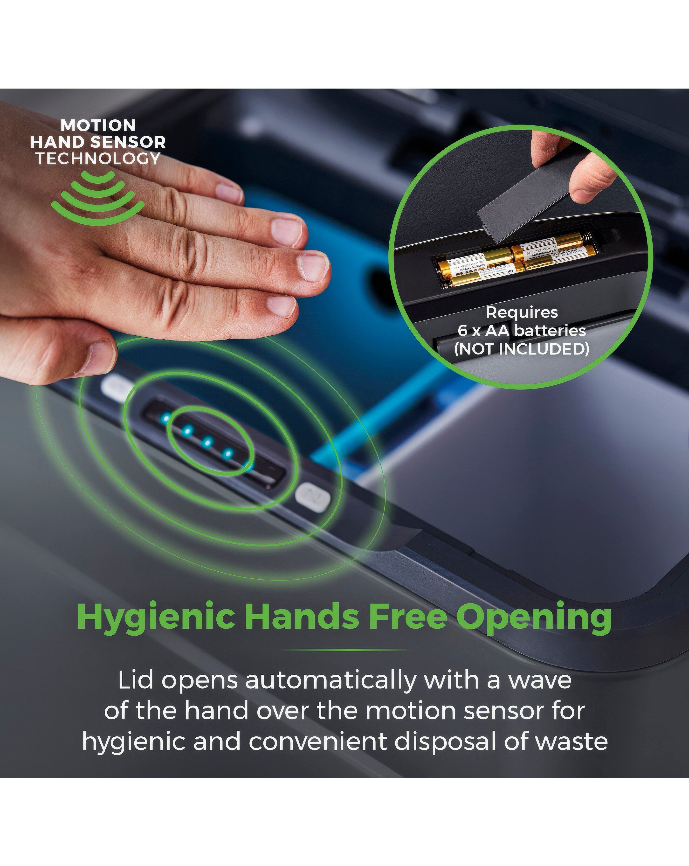 This 50L Recycling Sensor Bin is perfect for fuss-free hygienic waste disposal. Complete with infrared technology, you can open the bin hands free, although it can be used manually at the touch of a button. Ozone Filter Fresh technology helps to reduce unpleasant odours from within in the bin, whilst a carbon filter absorbs moisture. Just press and hold the button for 5 seconds to begin the 60 second cycle. It can be used as a 50L bin with two 25L compartments or a 40L bin with two 9L compartments and two 11L compartments that will keep waste expertly separated for fuss-free waste disposal. The inner buckets are removable and require a simple wipe clean with a damp cloth to maintain the pristine finish, whilst the body is constructed from stainless steel, with a fingerprint proof coating. HANDS-FREE OPENING: Infrared technology means the bin lid automatically opens with one swift hand motion, for smart and hygienic waste disposal. OZONE FILTER FRESH TECHNOLOGY: Ozone Filter Fresh technology reduces unpleasant odours in the bin, filtering out particles for fresher air. Press and hold the button for five seconds with the bin lid closed, to begin the 60 second cycle. Technology within the bin lid has been specifically designed to eliminate bacteria & odours, ensuring a fresh & clean smelling environment. REDUCES UNPLEASANT ODOURS: The carbon filter that sits within a compartment in the bin lid also helps to reduce unpleasant odours & absorbs moisture from within the bin - this, combined with the Ozone filter fresh technology, allows you to make full use of your bins capacity. Replacement filters are available to purchase - we recommend replacing the filter every 3 months. The inner buckets can be removed for easy cleaning. BATTERY OPERATED: The bin requires 6 x AA batteries to operate (batteries not included). 5 YEAR GUARANTEE: Trusted Tower quality with a standard 1 year guarantee and optional 4 year extension, subject to product registration online.