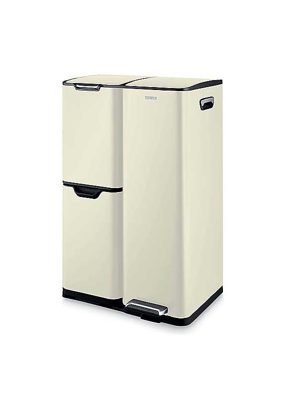 Hygienically dispose of your household waste with the 60L Pedal Recycling Bin from Tower. It features a pedal opening system to pop the lid open with ease, perfect for hygienic and hands-free opening. The spacious capacity is ideal for busy households and provides plenty of space to dispose of waste, ensuring you won't have to constantly empty the bin. Expertly constructed from strong and durable carbon steel, the bin is robust in order to withstand the rigours of a busy household, whilst the carbon steel body has a stylish cream powder coating that perfectly complements both modern and traditional decor individual compartments provide the capacity for easy waste disposal and the buckets are easily removable. The 13L compartment will open by pushing, whilst the 17L compartment has wheels on the underside and can be rolled out for convenience. A pedal operated 30L compartment offers complete versatility in waste disposal. A simple wipe clean is all that is needed to keep the bin looking its best, whilst the inner buckets can be easily removed for convenient cleaning. 10 YEAR GUARANTEE: Trusted Tower quality with a 1 year guarantee & optional 9 year extension, subject to product registration online Tower is an iconic British brand boasting over 100 years of quality in manufacturing and design excellence. Tower is the UK's fastest growing SDA & Housewares brand loved by millions of households 60L Capacity complete recycling system Made from strong and durable stainless steel Easy to open with foot pedal system Convenient fingerprint proof satin finish 13L + 17L + 30L compartments separate waste with ease Large design with stainless steel handles and black PP inner bucket Foldable pedal to save space for the 30L compartment 13L bin requires push opening / 17L is on wheels for smooth pull open Stainless Steel Dimensions approx. 39D x 46.7W x 71.9H cm