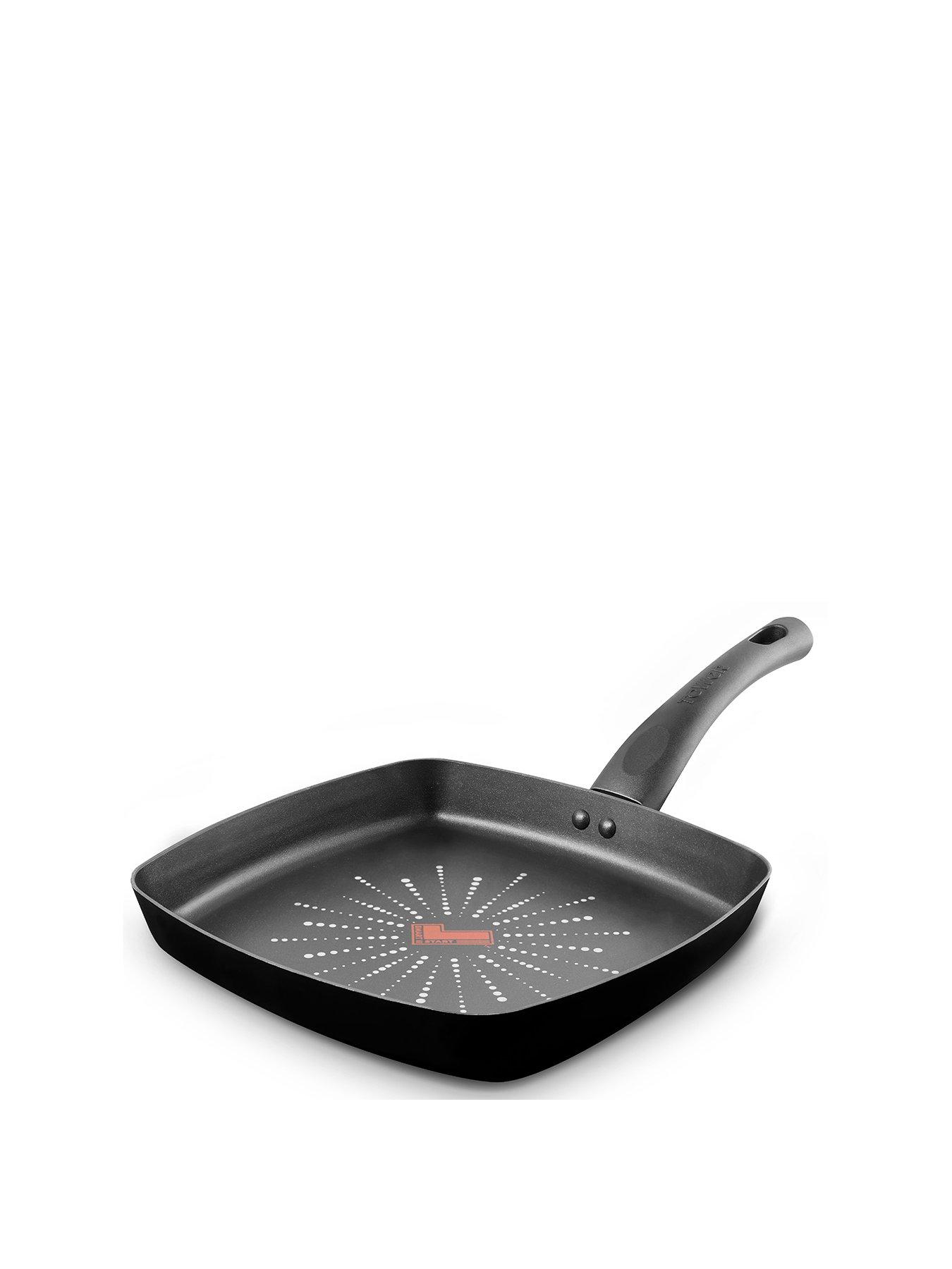 Tower Smart Start 26cm Grill Pan Cook succulent steaks and delicious chicken with this 26cm Grill Pan. Featuring SmartStart technology, the red tick sensor in the non-stick coating activates at 150C, changing from light to dark red once the optimum temperature has been reached, taking the guesswork out of cooking. The grill pan is lightweight and ultra-tough with expertly crafted 2.5mm thick aluminium. Great heat conductivity properties ensure quick heat-up time with easy manoeuvrability. Innovative Aeroglide non-stick coating consists of a base layer and durable abrasion layers. The 3-layer coating is 3x stronger than standard non-stick coatings. Aeroglide coating provides superior food release, is easy to clean and is dishwasher safe. The pan is oven safe up to 170C for 40 minutes, allowing for versatility & expansion of recipe ideas. The pan is free from harmful chemicals such as PFOA, Lead and Cadmium. Suitable for all hob types, except induction Depth: 26.4 CM Height: 8.5 CM Material Content: Aluminium Width: 44.5 CM This 26cm grill pan provides enough cooking space for family meals and entertaining, so you can serve with ease A temperature sensor is built into the non-stick coating that changes to dark red as soon as the pan reaches the optimum temperature The 3-layer coating is 3 times stronger compared to standard non-stick coatings for superior food release and easy clean This SmartStart Classic grill pan is free from harmful chemicals such as PFOA, Lead and Cadmium. The pan is lightweight and ultra-tough This SmartStart Classic grill pan features an ergonomic Bakelite handle for a comfortable grip and easy manoeuvrability The pan is oven safe up to 170C for up to 40 minutes, giving ultimate versatility. Suitable for all hob types, excluding induction