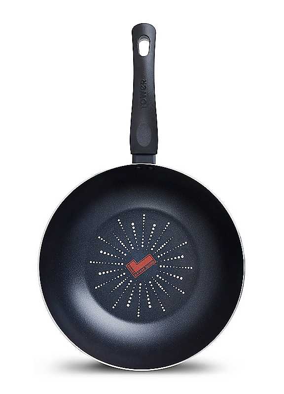 Create deliciously sizzling fajitas and stir-fry dishes with this 28cm Wok. Featuring SmartStart technology, the red tick sensor in the non-stick coating activates at 150°c, changing from light to dark red once the optimum temperature has been reached, taking the guesswork out of cooking. The wok is lightweight and ultra-tough with expertly crafted 2.5mm thick aluminium. Great heat conductivity properties ensure quick heat-up time with easy manoeuvrability. Innovative Aeroglide non-stick coating consists of a base layer and durable abrasion layers. The 3-layers coating is 3x stronger than standard non-stick coatings. Aeroglide coating provides superior food release, is easy to clean and is dishwasher safe. The wok is oven safe up to 170°c for 40 minutes, allowing for versatility & expansion of recipe ideas. The wok is free from harmful chemicals such as PFOA, Lead and Cadmium. Sustainable materials have been used, with fully recyclable products and packaging. Suitable for all hob types, except induction.This 28cm wok provides enough cooking space for family meals and entertaining, so you can serve up sizzling fajitas and flavoursome stir-fry dishes with ease.A temperature sensor is built into the non-stick coating that changes from bright red to dark red as soon as the wok reaches the optimum temperature. Simply pop the wok on the hob to heat up, wait for the SmartStart tick to change to dark red and take the guess work out of cooking for perfect results every time.The Aeroglide coating consists of a base layer and durable abrasion layers. The 3-layers coating is 3 times stronger compared to standard non-stick coatings for superior food release and easy clean. The exterior is finished with a heat resistant coating for improved safety. The durable Aeroglide coating ensures that you can use nylon utensils without risking any damage to the wok.This SmartStart Classic wok is free from harmful chemicals such as PFOA, Lead and Cadmium. The wok is lightweight and ultra-tough thanks to expertly crafted 2.5mm thick aluminium. Great heat conductivity properties and lightweight design ensures quick heat-up time with easy manoeuvrability.Trusted Tower quality with a standard 1 year guarantee and 1 year extension, subject to product registration online.Capacity: 3.8LDishwasher safe, handwash recommendedAluminiumDimensions approx. 8H x 28W x 28D cm