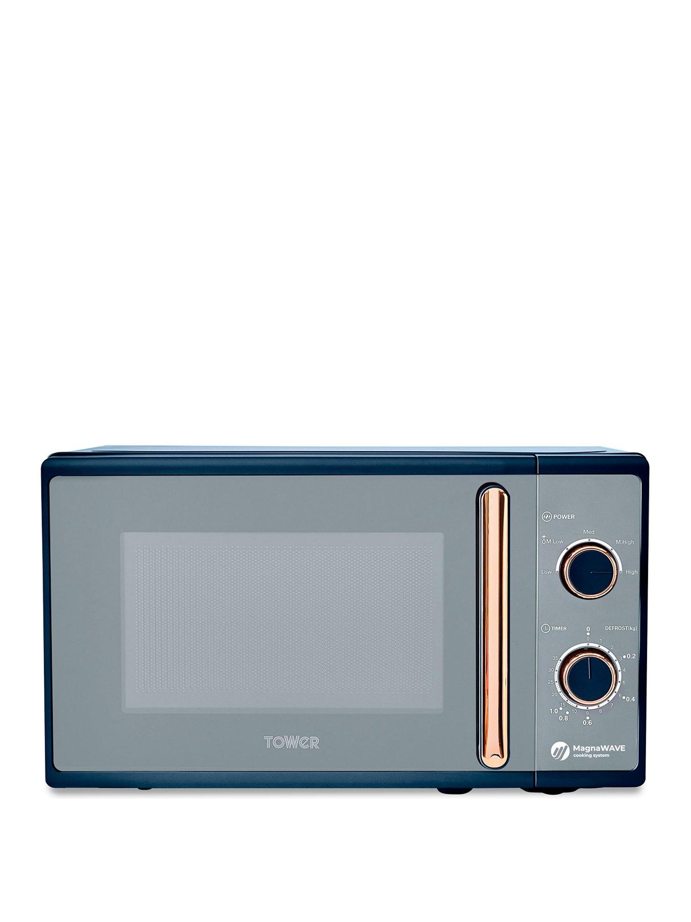 Tower T24038Mnb Cavaletto 800W Manual Microwave Cook Up Fuss-Free Everyday Meals For The Whole Family With This 20L Cavaletto Manual Microwave. Powerful 800W & 5 Heat Settings Features A Powerful 800W Output For Faster Cooking And Heating, With 5 Heat Settings That Can Be Adjusted To Suit Your Needs - Ideal For Everyday Convenient Cooking Energy Saving A Microwave Uses As Little As 5P Of Energy To Cook A Ready Meal Compared To An Oven, Which Uses 10 Times More Power 35-Minute Timer & Defrost Provides Enough Time To Cook Your Meals With Complete Precision So They'Re Ready To Serve, Whilst The Defrost Function Cooks Meals From Frozen In Minutes - Ideal For Leftovers Or A Speedy Emergency Snack Magnawave Technology Powered By Magnawave Technology, Concentrated Waves Circulate To Ensure Heat Is Distributed Evenly For A Well-Cooked Meal - Keeping Intense Flavours For Amazing Results With Every Use Dual Manual Dials Easy-To-Use Dials To Control The Heat Settings, Defrost Function & Cooking Time, With A Cool Touch Door Handle For Easy Open And Closing Part Of The Cavaletto Collection Trendy Kitchen Appliance Coated In Midnight Blue With Rose Gold Accents, Perfectly Styled With Other Essentials In The Cavaletto Collection A Brand You Can Trust Tower Is An Iconic British Brand Boasting Over 100 Years Of Quality In Manufacturing And Design Excellence. Tower Is The Uk'S Fastest Growing Sda & Housewares Brand Loved By Millions Of Households. Depth: 34.5 Cm Height: 25.8 Cm Width: 44 Cm Defrost Options: Y Manual / Touch: Manual Microwave Power Rating: 800 Watts Number Power Levels: 5 What?S In The Box: Microwave, Roller Ring, Glass Turntable, User Manual Powerful 800W Digital Microwave For Quick And Efficient Cooking Non-Slip Feet Provide Added Stability Easy To Clean Interior Requires A Simple Wipe Clean After Use, To Keep Your Cooking Space Hygienic And Free Of Any Leftover Food A High Quality Glass Turntable Ensures Your Food Is Cooked Thoroughly With Delicious Results Trusted Tower Quality With A Standard 1 Year Manufacturer?S Guarantee And A 2 Year Extension, Subject To Product Registration Online