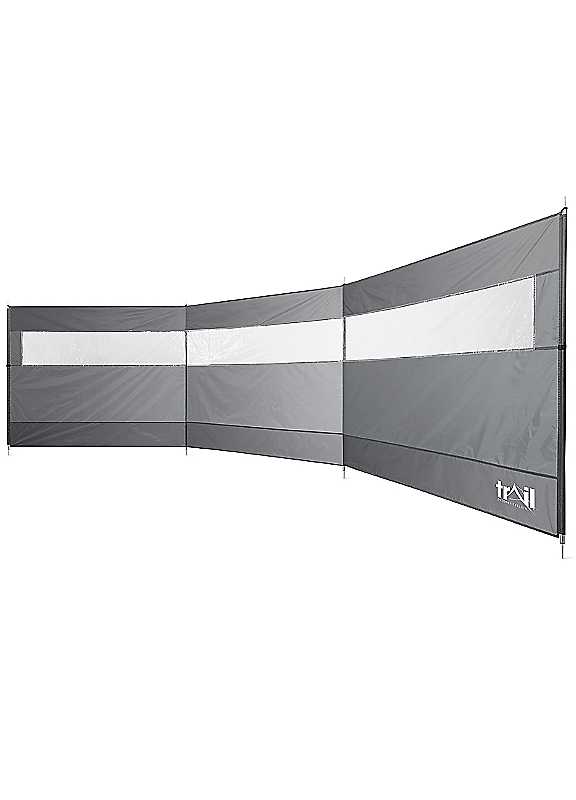 Strong Steel 4 Pole Windbreak - As well as shielding you from the sun and wind, this Grey Steel 4 Pole Windbreak is perfect for enhancing your privacy on picnics and camping trips. Plus, it's great for using in the garden. The windbreak utilises AGS Tech (Advanced Guy-Line System Technology) for optimal wind-resistance. Whereas most windbreaks only have loose guy-lines, it has pre-attached guys on both sides for greater torsional strength and stability. Steel poles and ground spikes allow you easily secure the windbreak into the ground. Coupled with AGS Tech, the heavy-duty ground spikes ensure the windbreak stays firmly in place without the need for extensive hammering.Made from durable 190T polyester fabric and features a PVC window. Although it's perfect for looking out and admiring your surroundings, it's designed to retain excellent privacy from passers-by. As an added extra, the windbreak includes a hardwearing drawcord bag to easily store and carry on outdoor adventures.Brand: TrailWeight: 3.1kgPolyesterSize approx. 140H x 500W x 5D cmLightweight & compact measurements approx. 54L x 10W x 10D cm inside the bagThe images of the products on our website are for illustrative purposes. We endeavour to display as accurately as possible the colours of our products on our website, however, as different computers and mobile devices display colour tones differently we cannot guarantee the complete accuracy of the pictures or photographs that are shown. | metal patio covers, steel awnings