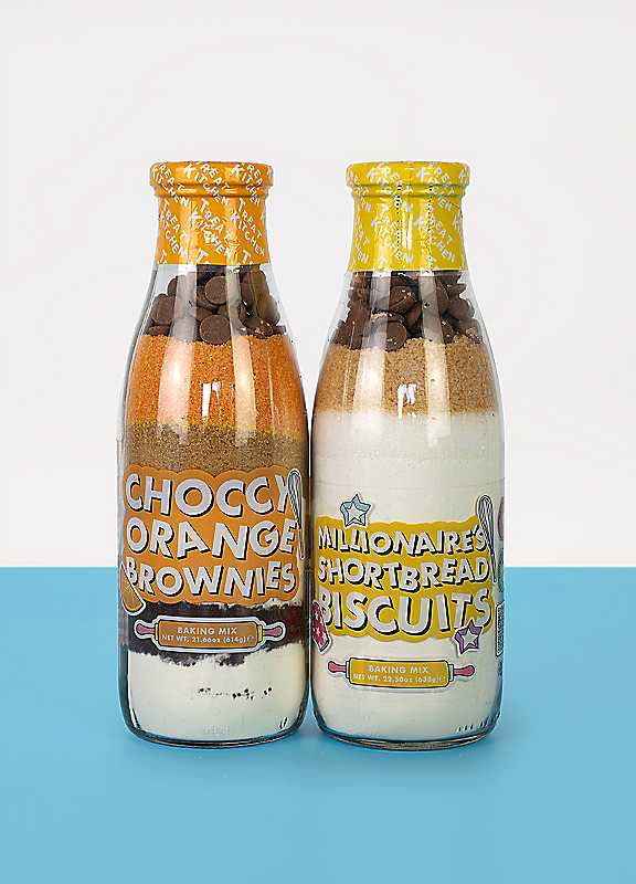 Treat Kitchen Baking Bottles Duo Pack - Contain (1 x Millionaires Shortbread Baking Bottle & 1 x Choccy Orange Brownies Baking Bottle) - Multi