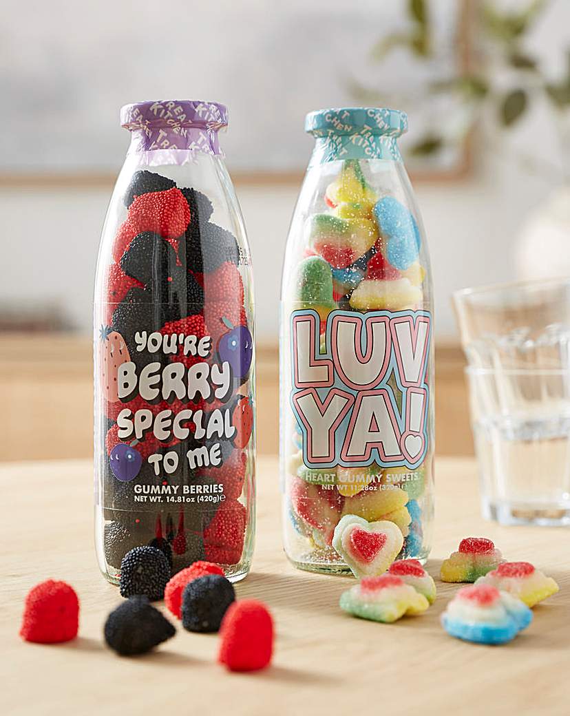 Luv Ya! & Berry Special Sweets in Bottle Duo Pack. Grab this duo pack of 2 of our best selling bottles! Each duo pack comes packaged in a printed bottle carrier with handle, making this the perfect instant gift. Show someone you care with Treat Kitchens Luv Ya and Berry Special sweet bottle duo. Luv Ya is packed with sugar coated foam hearts, while Berry Special is filled with red and black berry sweets for a fruity twist. This cheerful duo is perfect for birthdays, Valentines Day, Mothers Day, or just because. Colourful, fun, and full of flavour, its a sweet way to put a smile on someones face. Better yet, the quirky, fun glass message bottles can be reused after your treats have been enjoyed with only 1% packaging waste. Just clean your empty bottle with warm soapy water and have fun upcycling your glass bottle. Please note we are unable to deliver this item ROI or Northern Ireland. Allergy Advice: For allergens including cereals containing gluten.