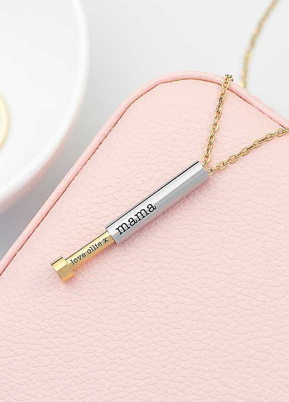 Treat Republic is a design and personalisation studio based in Hertfordshire in the UK. We love creating one-of-a-kind personalised items that help you share a smile and remember all of life's wonderful and extraordinary moments.A stylish gold and silver round hidden message capsule women's necklace will complete any outfit and hold a real sentimental value to the wearer. Personalise her necklace with a secret message to add an extra layer of meaning and thoughtfulness to this truly special gift.Outer Message: Up to 15 charactersInner Message: Up to 15 charactersChain Length: 46cmPendant: 2.3cm x 0.5cm x 0.5cmPersonalise with a message on the outside and inside, Beautiful silver plated necklace for her, An amazing Valentine's or Mother's Day giftStandard, Lobster Clasp46cm | lobster clasp necklace, gold plated necklace, personalized necklace for mom, gold plated silver necklace, custom pendant necklace, personalized gold necklace, silver plated necklace, personalized message necklace, round pendant necklace