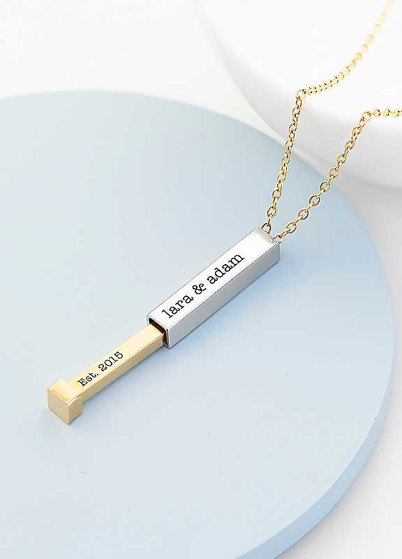 Treat Republic is a design and personalisation studio based in Hertfordshire in the UK. We love creating one-of-a-kind personalised items that help you share a smile and remember all of life's wonderful and extraordinary moments.Looking for a gorgeous necklace for her? This beautiful personalised gold and silver square hidden message capsule women's necklace would make a wonderful addition to your loved one's jewellery collection, with the sleek metal capsule adding a sentimental touch. A beautiful gift for a girlfriend, sister, daughter or mother. Our amazing team of specialists will engrave her personalisation onto the capsule pendant for a thoughtful gift of the highest standard, she's bound to adore. Also available with a round edged capsule design and a black and silver men's variety. Name (or message) 1 will go on the outside, Name 2 will go on the inside.Outer Message: Up to 15 charactersInner Message: Up to 15 charactersChain Length: 46cmPendant: 2.3cm x 0.5cm x 0.5cmPersonalise with a message on the outside and inside, Beautiful silver plated necklace for her, An amazing Valentine's or Mother's Day giftStandard, Lobster Clasp46cm | personalized pendant necklace, gold necklace and pendant, personalized necklace for girlfriend, square pendant necklace, silver plated necklace, personalized silver pendant, delicate gold necklace, personalized necklace for mom, personalized gold plated necklace, personalized message necklace, custom necklace charm, necklace and pendant, silver pendant necklace, silver plated gold necklace, ladies pendant necklace