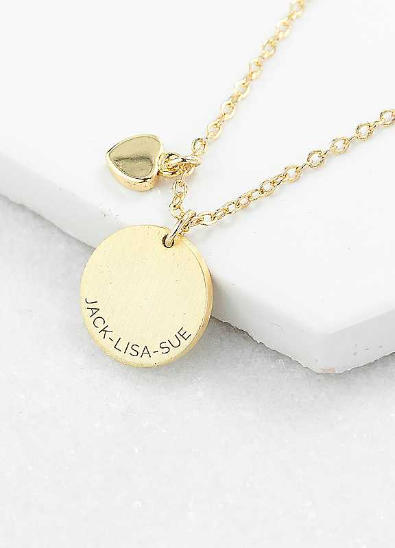 Treat Republic Personalised Heart and Disc Family Necklace - Gold - Size 48cm