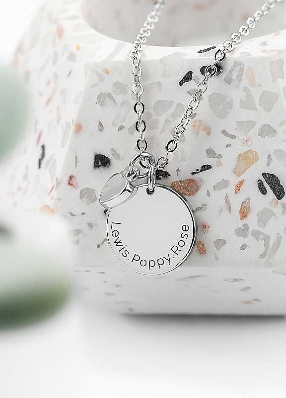 Treat Republic is a design and personalisation studio based in Hertfordshire in the UK. We love creating one-of-a-kind personalised items that help you share a smile and remember all of life's wonderful and extraordinary moments.Part of our new designs of beautiful but simple jewellery. This polished necklace features a cute little heart charm and a disc necklace that you can personalise with the names of the members of your family (up to 25 characters).Personalise with names of up to 25 characters, Beautiful silver plated necklace for her with heart and disc pendant, An amazing Valentine's or Mother's Day gift, Lobster claspStandard, Lobster Clasp47cm | silver heart necklace, personalised necklace with name, necklace with lobster clasp, heart pendant necklace, engraved heart necklace, personalized pendant necklace, personalized necklace for mom, silver plated necklace, silver disc necklace, personalized heart necklace
