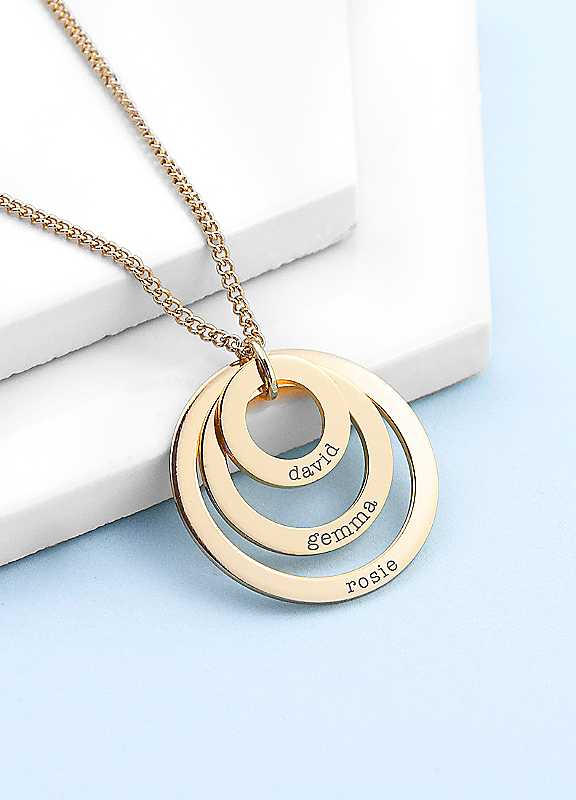Treat Republic is a design and personalisation studio based in Hertfordshire in the UK. We love creating one-of-a-kind personalised items that help you share a smile and remember all of life's wonderful and extraordinary moments.This charminn personalised rings of love necklace is made with a set of three rings, each of which can be engraved with a special name, date or message. Make your necklace truly unique by personalising each ring with the name of someone who means the world to you, a special date, or perhaps a positive affirmation and our expert personalisation team will work their magic. Available in sterling silver, beautiful gold and gorgeous rose gold varieties. Your gorgeous necklaces will come in a statement black, Treat Republic branded box - perfect for safe storage and transportation.Small Hoop Name: Up to 15 charactersMedium Hoop Name: Up to 15 charactersLarge Hoop Name: Up to 15 charactersChain Length: 50cmPendant: 3cm x 3cm x 0.3cmLuxury gold plated necklace for her, Lobster clasp chain, Personalise with 3 names of up to 15 characters, Beautiful jewellery gift that's perfect for Valentine's or Mother's DayStandard, Lobster Clasp50cm | charm necklace, lobster clasp necklace, necklace for her, custom name necklace, rings of love necklace, gold plated necklace, personalized mother necklace, custom pendant necklace
