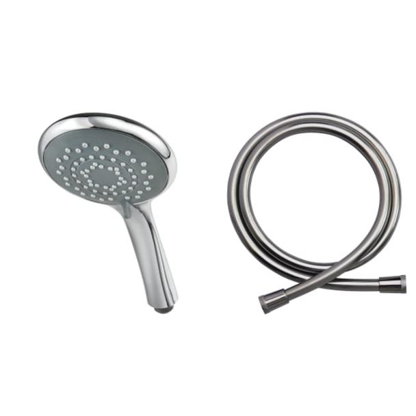 Triton 5 Function Chrome Shower Head 210 x 110mm + Wickes PVC Smooth Silver Shower Hose 1 5m