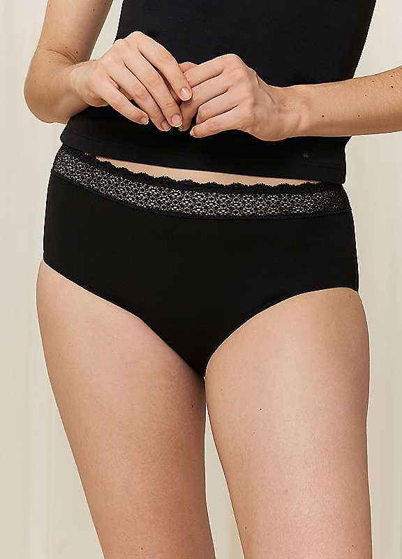 Feel of Modal® midi - Soft to the skin with a recycled lace band. Made of smooth conscious Lenzing Modal® fabric for its soft-to-skin, soothing qualities. The waistband is lace trimmed and also recycled. Brand: Triumph Pack of 3 Recycled lace detailing Lenzing Modal® fabric Recycled lace trimmed waistband Machine Washable 87% Modal®, 13% Elastane Modal® is a registered trademark.