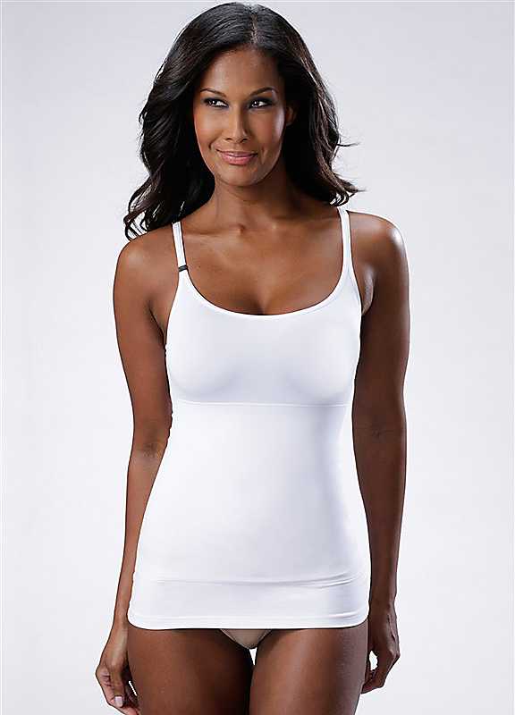 An attractive piece of shapewear top which helps create a beautiful slim silhouette. Its reinforced fabric around the waist shapes magically creates a flat tummy while its narrow straps are adjustable. Brand: Triumph Hand wash 87% Polyamide and 13% Elastane (LYCRA) *Lycra is a registered trademark of Invista.