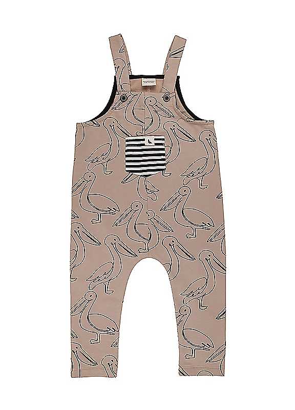 These kids organic cotton beige pelican print dungarees from Turtledove London are made from soft and sustainable fabric. Featuring a playful pelican print and button closure, they're comfortable, durable and ideal for everyday wear or outings.Cool machine washableDo not tumble dryWarm ironWash & Iron inside out100% Organic Cotton (GOTS Certified)