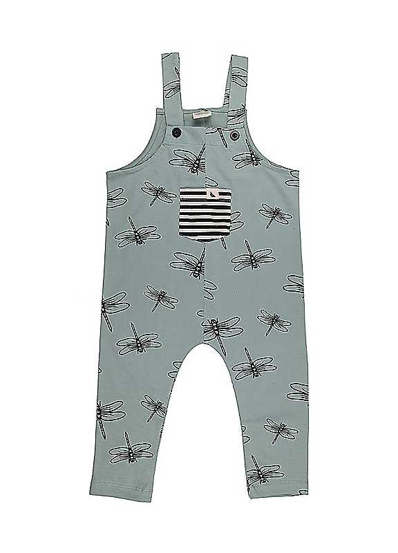 Turtledove London Kids Organic Cotton Blue Damselfly Print Dungarees - Size 1/2YEARS