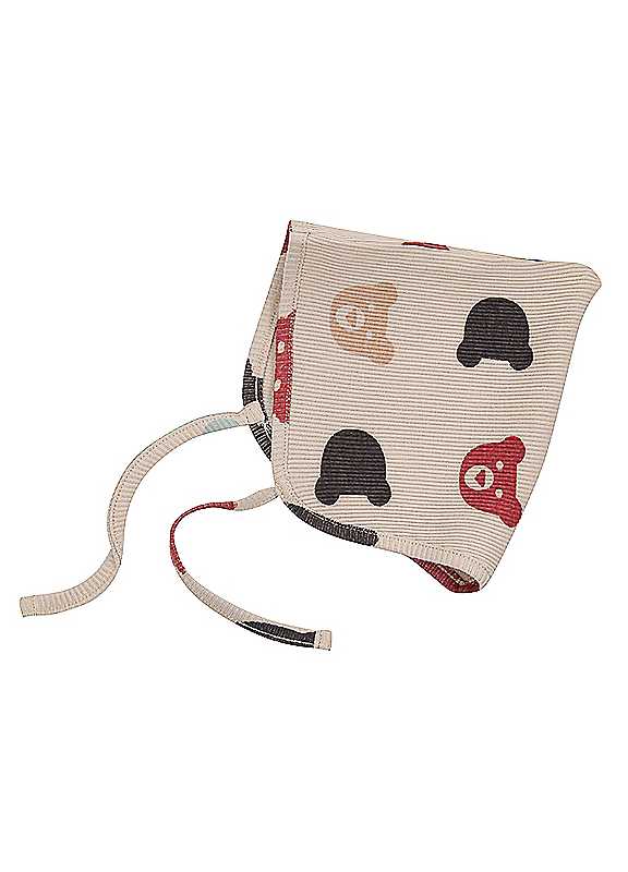 Turtledove London Kids Organic Cotton Stone Smiling Bear Print Bonnet - Size 1/2YEARS