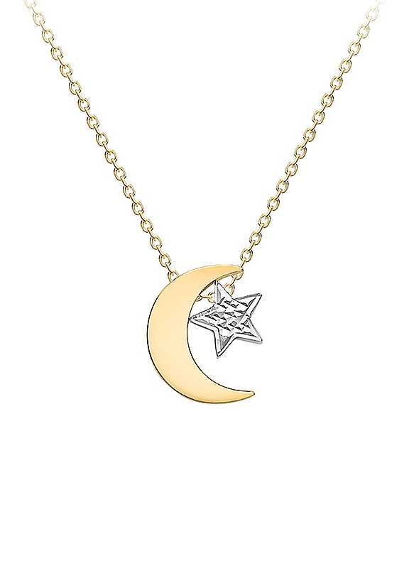 Tuscany Gold 9ct 2-Colour Gold Moon & Star Adjustable Necklace