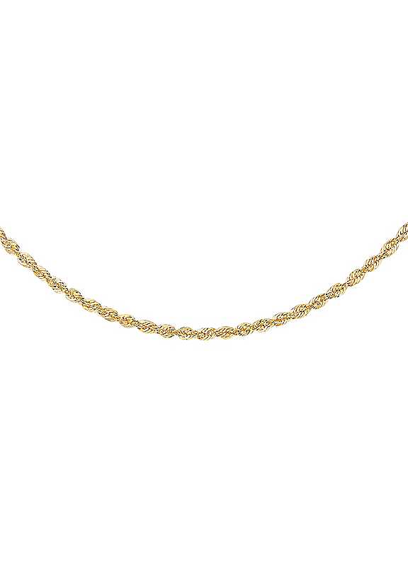 Chic, stylish and a must-have for your jewellery collection, this 9ct gold classic rope chain necklace is loved for its sleek design that will add a fashionable finish to any outfit. Elegantly crafted from precious 9ct yellow gold for a warm and classic tone. Presented in a beautiful gift box. Brand: Tuscany Gold Material: 9ct gold Lobster Clasp Chain length approx. 61 cm (24 in)