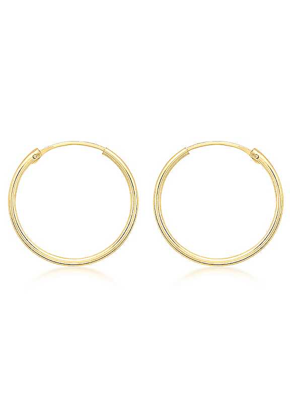 Elegantly crafted from precious 9ct yellow gold for a warm and classic tone. These beautiful, versatile earrings are ideal as a treat for yourself or as a gift for someone special. Measuring 18mm diameter with an endless hoop fitting, they are for pierced ears only. Brand: Tuscany Gold Presented in a beautiful gift box Material: 9ct Yellow Gold Endless hoop fitting Size approx. 18mm diameter 1.2mm width For pierced ears only | stylish earrings gold, womens casual earrings, delicate earrings gold, simple elegant earrings, small gold earrings, small hoop earrings, round hoop earrings gold, simple hoop earring, dainty hoop earrings, simple gold earrings