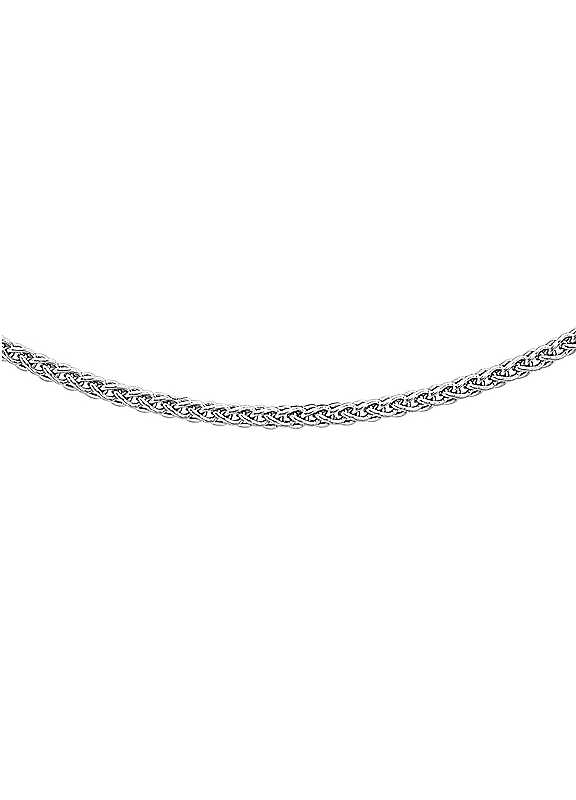 Elegantly crafted from precious 9ct white gold for a modern tone. This elegant Spiga chain is the perfect addition to any jewellery collection. It measures 46cm in length and is 1.3mm wide. Brand: Tuscany Gold Presented in a beautiful gift box Material: 9ct White Gold Spring Ring Clasp Chain length approx. 46 cm (18 in) | gold chain necklace, minimalist gold necklace, 9ct gold chain, white gold chain, delicate gold chain