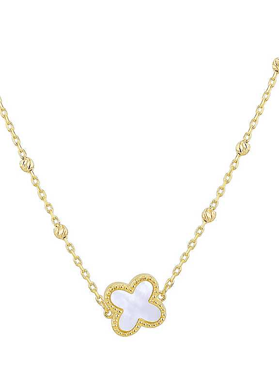 Tuscany Gold 9ct Yellow Gold Mother Of Pearl Clover Necklace - Size ONE SIZE