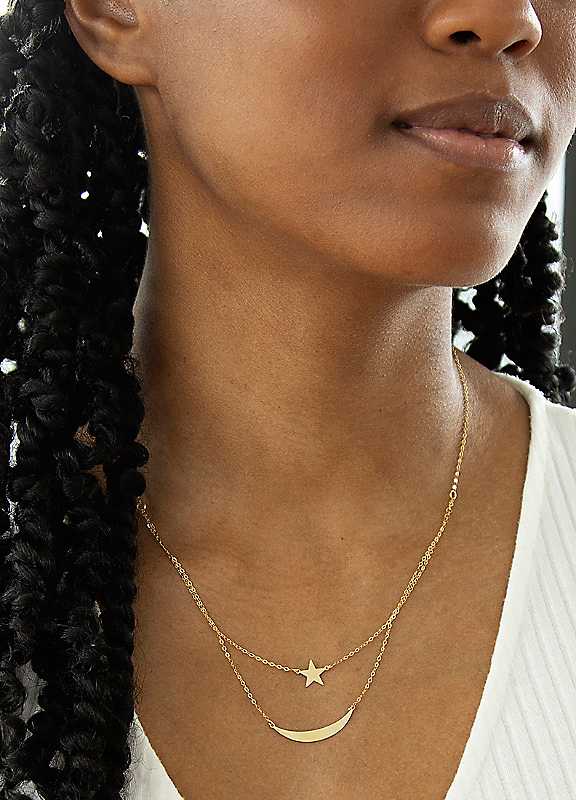 Tuscany Gold 9CT Yellow Gold Star & Moon 2 Layer Necklace