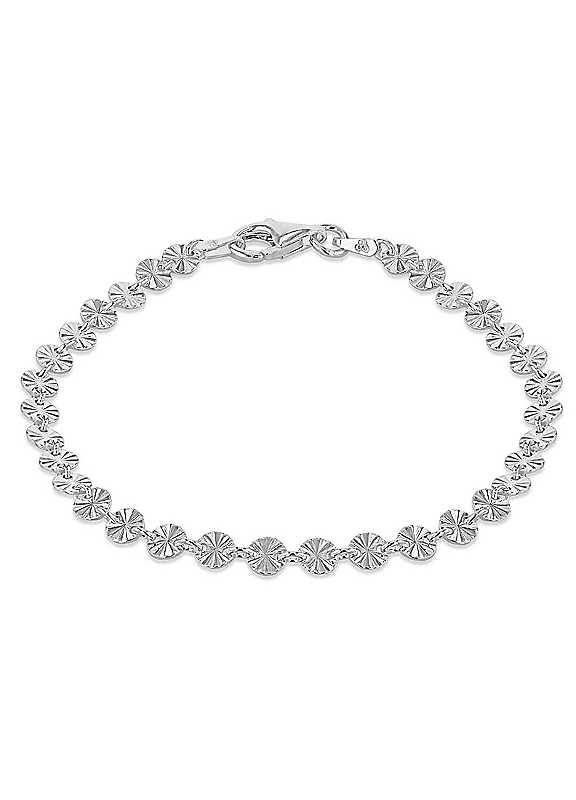 Beautifully crafted from sterling silver this diamond cut disc link bracelet is the perfect standalone bracelet but equally looks just as good layered up. This makes the perfect gift for a loved one and comes in a Tuscany Silver branded box.Brand: Tuscany Silver | stackable bracelets silver, disc bracelet, sterling silver link bracelet, thin silver bracelet, diamond cut bracelet, delicate silver bracelet, chain link bracelets