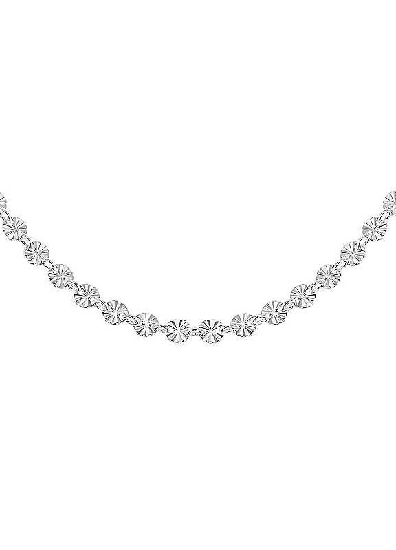 Elegantly crafted from sterling silver, this piece is perfect for every day wear and stylish enough for a special occasion. This chain is a beautiful diamond cut disc link chain that sparkles when worn. The chain length sits at 17 inches. This makes the perfect gift for a loved one and comes in a branded box. Brand: Tuscany Silver Sterling Silver (925) Length approx. 43 cm (17 in) Pendant size approx. 4 mm | diamond cut chain, silver disc necklace, sterling silver chain