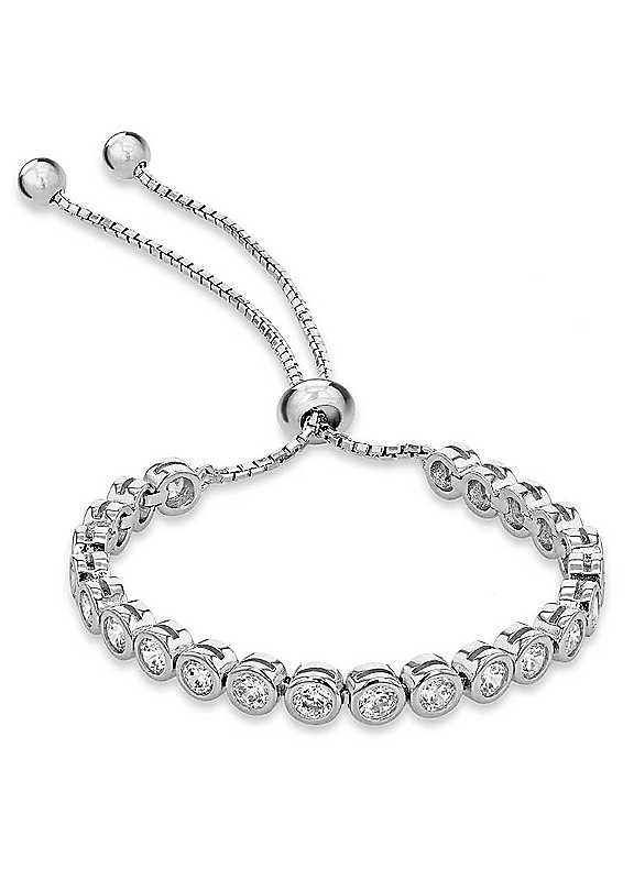 Elegantly crafted from rhodium plated sterling silver, this piece is perfect for every day wear. This slider tennis bracelet is adorned with white cubic zirconia's that sparkle on your wrist. The sliding mechanism allows it to be adjusted on the wearers wrist making it the perfect choice as a present. This comes in a lovely branded box. Brand: Tuscany Silver Sterling Silver (925) Length approx. 13 cm x 23 cm (5 x 9 in) Bracelet size approx. 3 mm | adjustable silver bracelet, zirconia tennis bracelet, adjustable tennis bracelet, silver tennis bracelet, silver slider bracelet