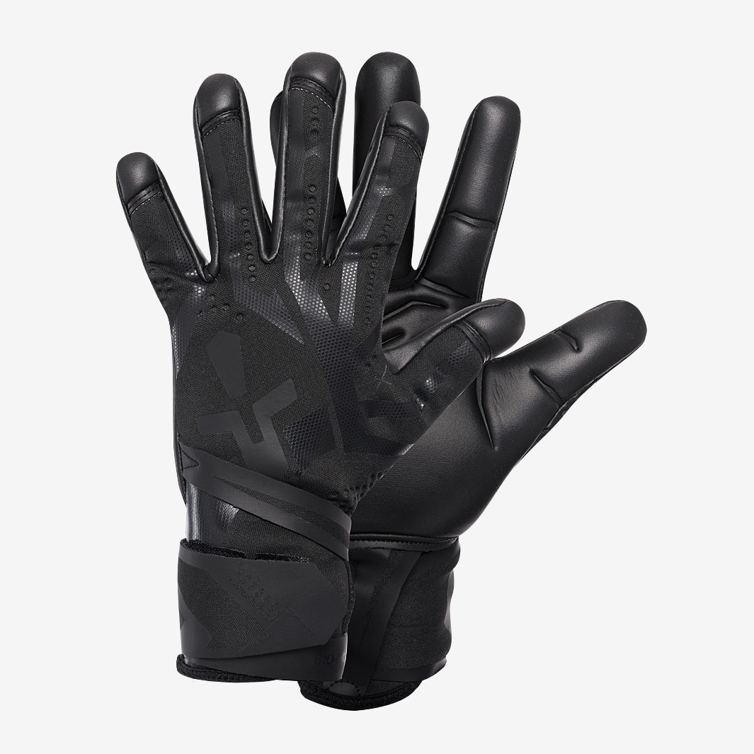 Be relentless in pursuit of victory with Tuto Secutor Elite goalkeeper gloves in Blackout, featuring a highly streamlined design for maximum responsiveness and agile performance. The TUTO Secutor Elite is named after a Secutor, who was a class of gladiator in ancient Rome. Named after a fighting style that included ruthlessly pursuing your opponent, the Secutors wore minimal armour and were characterised as fast, agile and lethal in battle. The TUTO Secutor takes its cues from this, defying convention. Its aggressive design and fit deliver an unrivalled performance on the pitch. Technical detailing focuses on enhancing natural movement, improving feel and hand response. The TUTO Secutor delivers improved handling with a responsive feel, world class grip and fit like no other without restriction. It is an exceptional glove. Palm The palm consists of TUTO Invictus Foam, which is TUTOs statement and proprietary latex that has been refined for the Secutor. The elite 4mm latex handles exceptionally well in wet and dry conditions and moulds to the palm with an improved memory foam layer. Sourced exclusively via Latico in Germany, the palm has embossed channels throughout to mimic the natural movement of the hand. Cut Negative cut is a classic innerseam cut where all seams are located inside the glove, making the glove fit tighter and increasing ball control. Backhand Designed using TUTO Elite Neoprene for superior performance. Bespoke to TUTO, the material provides exceptional breathability, tactility and handling. Its responsive feel provides an elasticity that mimics the natural movement of the hand. A layered TUTO hot melt webbing sits on top of the material to restrict lateral and vertical expansion, ensuring a consistent fit. Punchzone The punchzone is constructed using Poron XRD. TUTO have partnered with Poron to deliver XRD Technology specifically for use in keeper gloves. Poron XRD is a lightweight, thin and breathable material thats engineered for repeated impact and shock absorption. A lightweight low profile XRD insert sits within the punchzone while soft and flexible to the touch, its tough on impact. Its unique properties contour the knuckle and offer a custom fit for each user. Wrist Closure Featuring a BIOFit strap, which gives an anatomical and minimal construction designed to offer a secure closure without excess material bulking. Silicon TUTO microprint on the underside restricts movement once fitted. A pulltab adjuster reinforced with hot melt improves strength and shape retention. Sizing Please note that due to the minimal design of the glove the sizing can come up slightly small. Tuto recommend buying half a size to a full size up from the size you would normally buy.