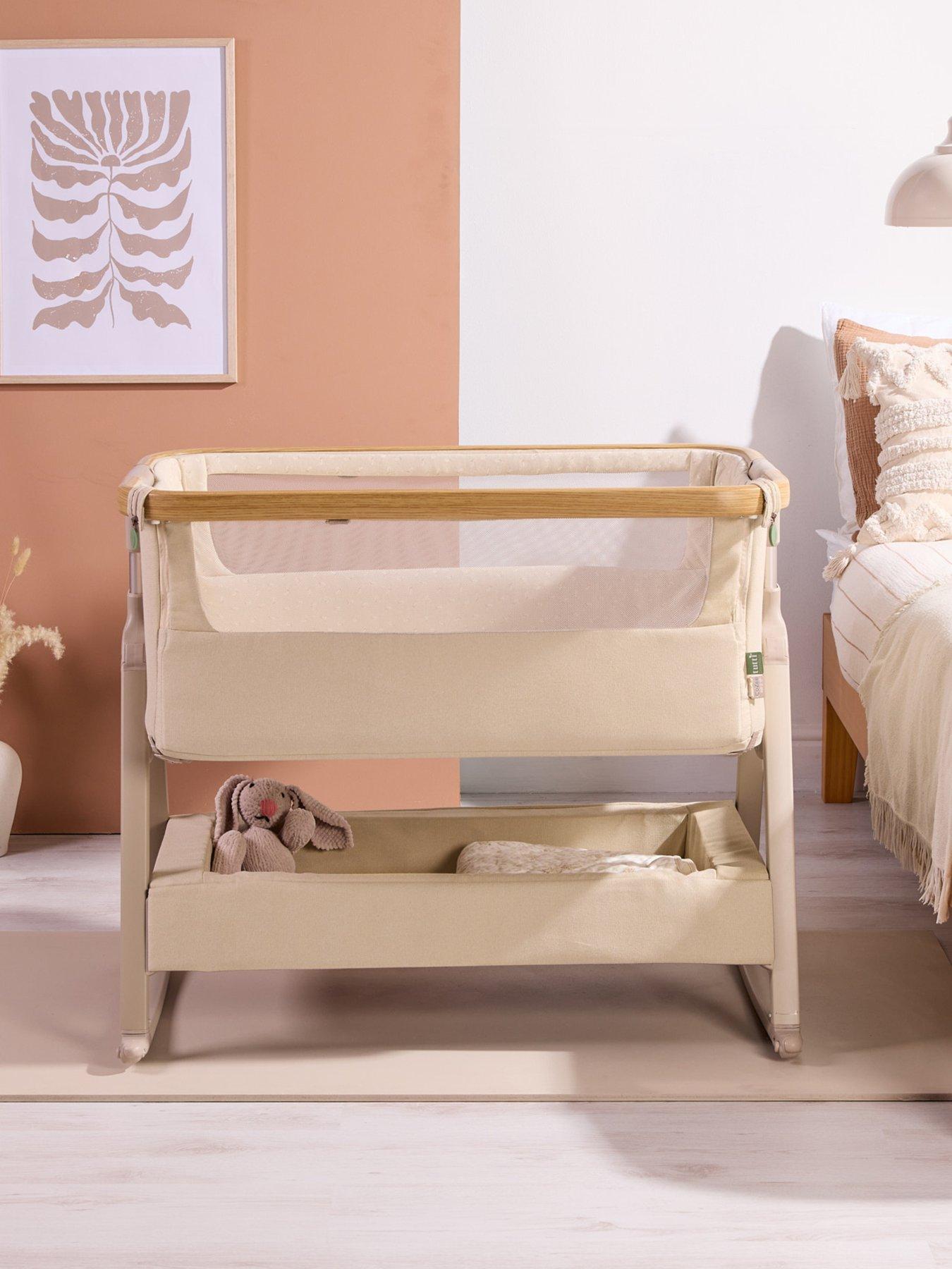 Tutti Bambini Cozee Air 2 Bedside Crib - Toasted Oak / Sand The Cozee Air2 Bedside Crib Combines Beautifully Tailored Design With Thoughtful Functionality, Creating A Calm And Comfortable Sleep Space From Day One. Its Refined Finish And Quilted Lining And Mattress Cover Bring A Sense Of Luxury, While Hidden Ventilation Holes In The Side Barrier Maintain Breathability Throughout The Night. Practical As It Is Elegant, The Air Folds Open In Just 30 Seconds - Making It Effortless For Travel As Well As Home. Six Adjustable Mattress Positions And An Incline Option Support Your Baby'S Comfort, While Rocking Bars And Wheels Make Life That Much Easier. With A Deeper Under-Crib Storage Tray To Keep Essentials Close And A Flat-Fold With Travel Bag Included, The Cozee Air Is Designed For Closeness, Convenience, And Peace Of Mind In Those Early Months. Mattress, Carry Bag, Removable Rocking Bars, And Castors Included. Cozee Crib Bedding Is Also Available To Perfectly Fit Your Cozee And Complete The Look. Depth: 92 Cm Height: 69 Cm Material Content: Frame & Legs - Sandy Powder Coating On The Legs & Wood Grain Application On The Top Frame Outer Fabric - Airflow Weave 100% Polyester Inner Lining - Jersey Quilting 70% Bamboo 30% Cotton Mattress - Corn Fibre Inner With Quilted Cotton Outer Width: 56 Cm Assembly: Part Assembled Enhanced Breathability - Side Barrier With Hidden Ventilation Holes And Double Mesh Panels For Improved Airflow. Tailored Design - Beautifully Finished With Breathable Airflow Exterior And Quilted Fabrics For A Refined, Premium Look. Customisable Sleep - Six Adjustable Mattress Heights And Incline Function To Ease Congestion And Reflux. Flexible Functionality - Includes Rocking Bars And Wheels, Offering Both Soothing Motion And Easy Mobility. Travel Ready - 30-Second Fold With A Handy Travel Bag, Plus A Deeper Storage Tray For Everyday Essentials. Premium Comfort - Soft Quilted Bamboo Jersey Mattress Cover And Quilted Cotton Lining For A Cosy Sleep Surface. Coordinating Bedding - Choose From A Range Of Cozee Bedding To Complete Your Bedside Crib 69 To 84 Product Height