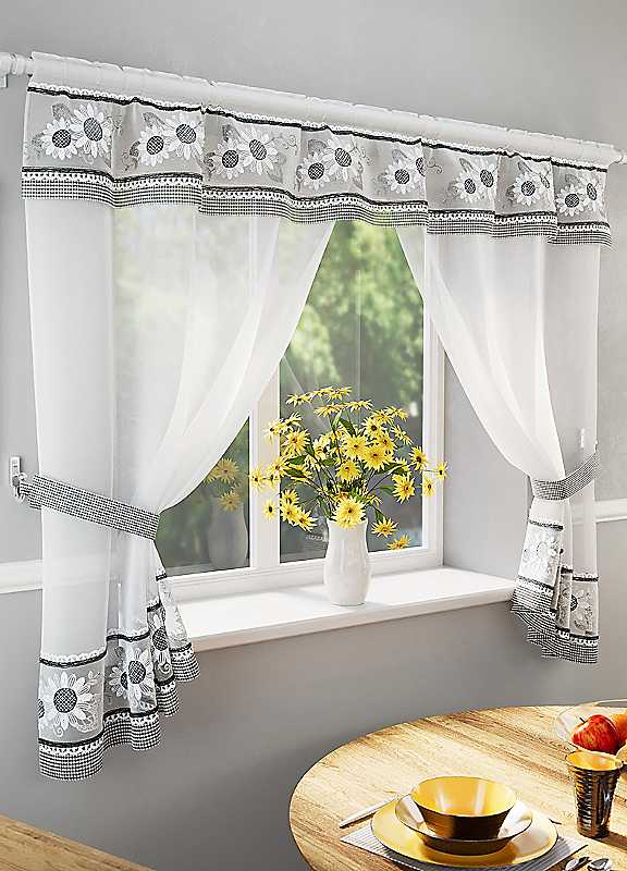 Brighten up your home with the charming Keswick window set. The design features embroidery and appliqu© sunflower motifs, with matching tie backs. Crafted from high quality fabric for long lasting beauty and easy care. The window set provides light filtration allowing natural light to gently through whilst still providing privacy.The set includes an attached valance for easy installation using the rod pocket header.Complete window setMatching tie backsSheer voile panelsRod pocket headerHand wash, Cool iron100% Polyester