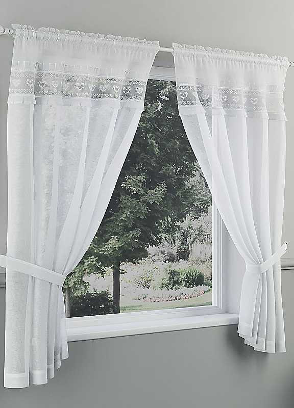 Tyrone Lucy Heart Embroidered Window Set with Matching Tie Backs - White - Size 140 x 122 cm