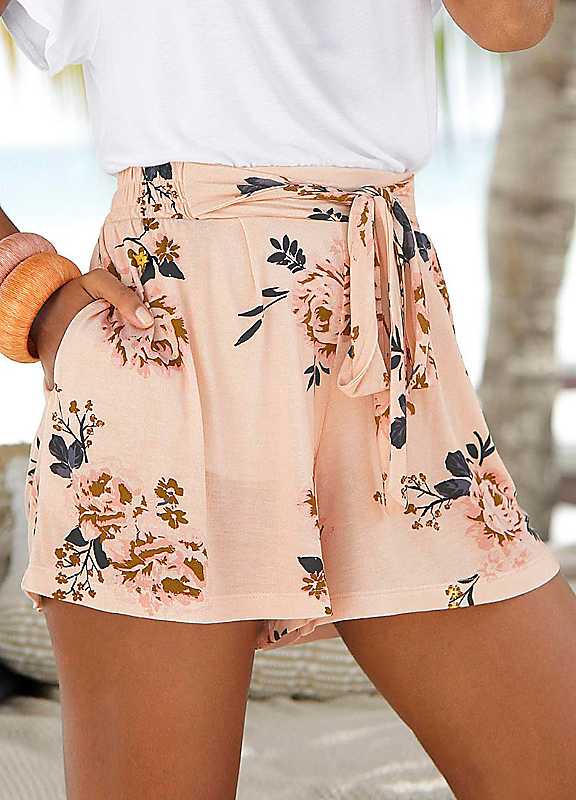 These summer shorts ensure an airy, relaxed fit and quickly become the new favourite for walks on the beach or on mild summer evenings. In a gorgeous floral print design, they feature a casual tie-belt on the elasticated waistband. The loose fit makes them a stylish combination partner for figure-hugging tops. s.Oliver Shorts Features: Colour: Nude Print Washable 100% Viscose Inside leg approx. 12 cm (4¾ in)