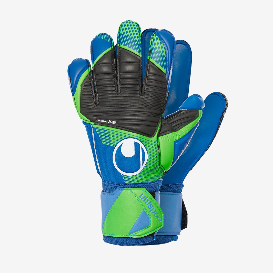 Be at your best in any conditions wearing Uhlsport Kids Aquasoft goalkeeper gloves in Pacific BlueFluo GreenWhite, featuring AQUASOFT latex for superior grip in the rain. Constructed in the classic flat palm cut with thumb and side wraps, the AQUASOFT palm actively repels water to help your gloves stay grippy when its raining, giving consistent performance during changeable conditions. On the backhand, an abrasionresistant REBOUND ZONE provides longlasting power for punched clearances, while breathable textile encourages airflow to keep your hands cool, dry, and comfortable. Foam Innovative AQUASOFT uses Aqua additives for ultimate grip in wet conditions Cut Classic Glove Body Textile material provides perfect breathability and wearing comfort Closure Wraparound latex strap with full bandage REBOUND ZONE provides maximum flexibility, grip, and abrasion resistance