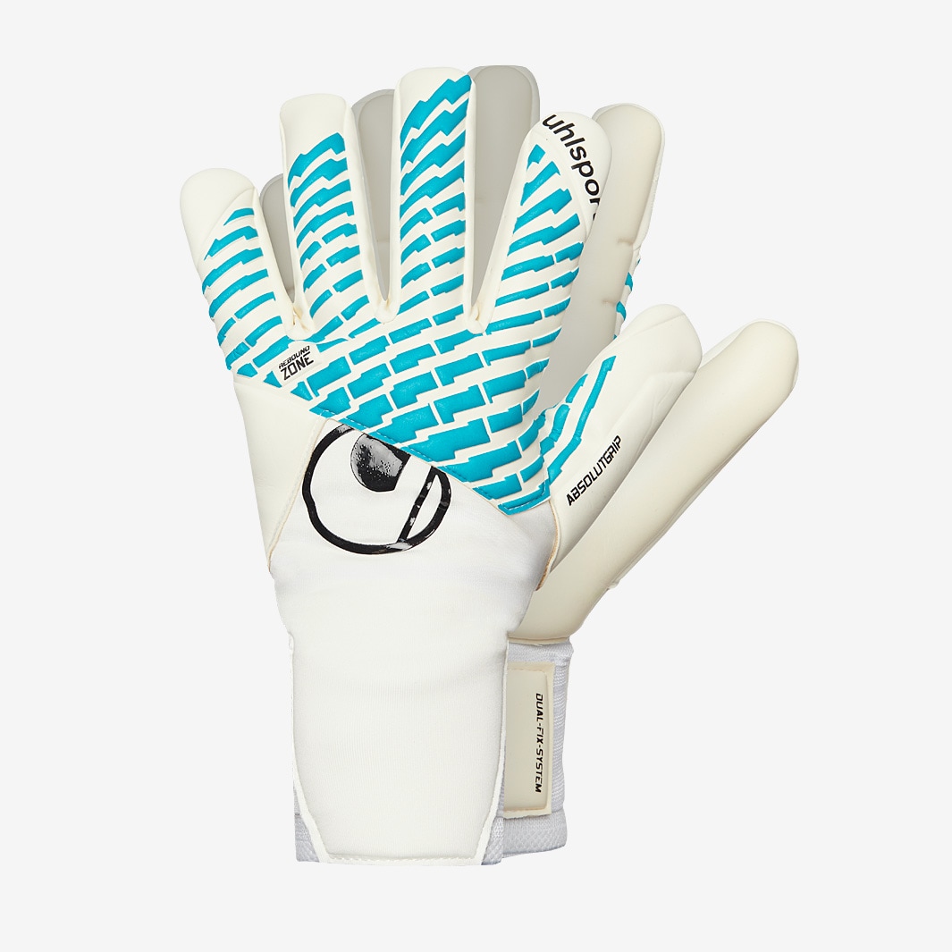 Become the ultimate goalkeeping machine with Uhlsport Kids FOAM Cybertec Absolutgrip HN goalkeeper gloves in WhiteCyber BlueBlack, featuring a highly efficient REBOUND ZONE on the backhand for perfect performance. Designed to provide grip and punching power while allowing natural flexion of the hand, the strategically placed 3D embossing lets you dominate your box with absolute confidence. On the palm, ABSOLUTGRIP offers the ideal balance between grip, cushioning, and durability, excelling in dry conditions but maintaining reliable performance in wet weather too. This versions a halfnegative cut with additional latex on the extremities of the backhand and the fingertips for extra coverage and control. At the wrist, Uhlsports DUAL FIX SYSTEM uses two straps for easier fastening and improved stability, so your gloves always feel secure and ready for action. Foam Patented ABSOLUTGRIP for enhanced cushioning and outstanding grip in all weather conditions Cut HalfNegative inner seam construction ensures a tight fit and maximum ball control Glove Body Functional neoprene for best flexibility and wearing comfort Closure DUAL FIX SYSTEM innovative closure system for optimised fixation and maximum flexibility of the wrist REBOUND ZONE provides maximum flexibility and perfect punching FLEX ENTRY elastic entry guarantees maximum flexibility and wearing comfort 3D FLEX 3D foam thermoforming for maximum flexibility