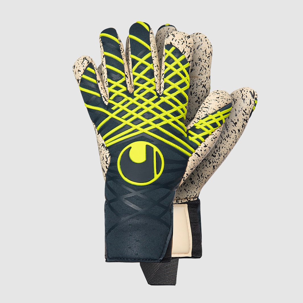 Read the game and take control with Uhlsport Kids Prediction Supergrip+ Finger Surround goalkeeper gloves in NavyWhiteFluo Yellow, featuring a grip net structure on the backhand for improved flexibility and grip. The eyecatching lattice pattern allows natural flexion of the hand thanks to the placement of the grip lines, while also increasing ball contact for greater purchase on punches.On the palm, popular SUPERGRIP+ foam incorporates highgrip elements, which raise to the surface when dampened to give extra tackiness to the grip.This versions a tightfitting Finger Surround cut with the ULTIMATE CONTACT+ wrap, which sees the latex extend around the hand for even more grip. Great for hanging on to the ball when you come to claim and maintaining control over throws as you look to counter.At the wrist, Uhlsports DUAL FIX SYSTEM uses two straps for easier fastening and improved stability, so your gloves always feel secure and ready for action. Foam SUPERGRIP+ foam provides ultimate grip in all weather conditions thanks to new foam formula with integrated highgrip elements Cut Finger Surround combination of inner seam and ergonomic external design provides a tight fit and maximum grip Glove Body AIRPRENE body material provides perfect breathability and wearing comfort Closure DUAL FIX SYSTEM innovative closure system for optimised fixation and maximum flexibility of the wrist REBOUND ZONE provides maximum flexibility and perfect punching ULTIMATE CONTACT+ innovative wrap construction for maximum grip in all catching situations and perfect fit FLEX ENTRY elastic entry guarantees maximum flexibility and wearing comfort 3D FLEX 3D foam thermoforming for maximum flexibility