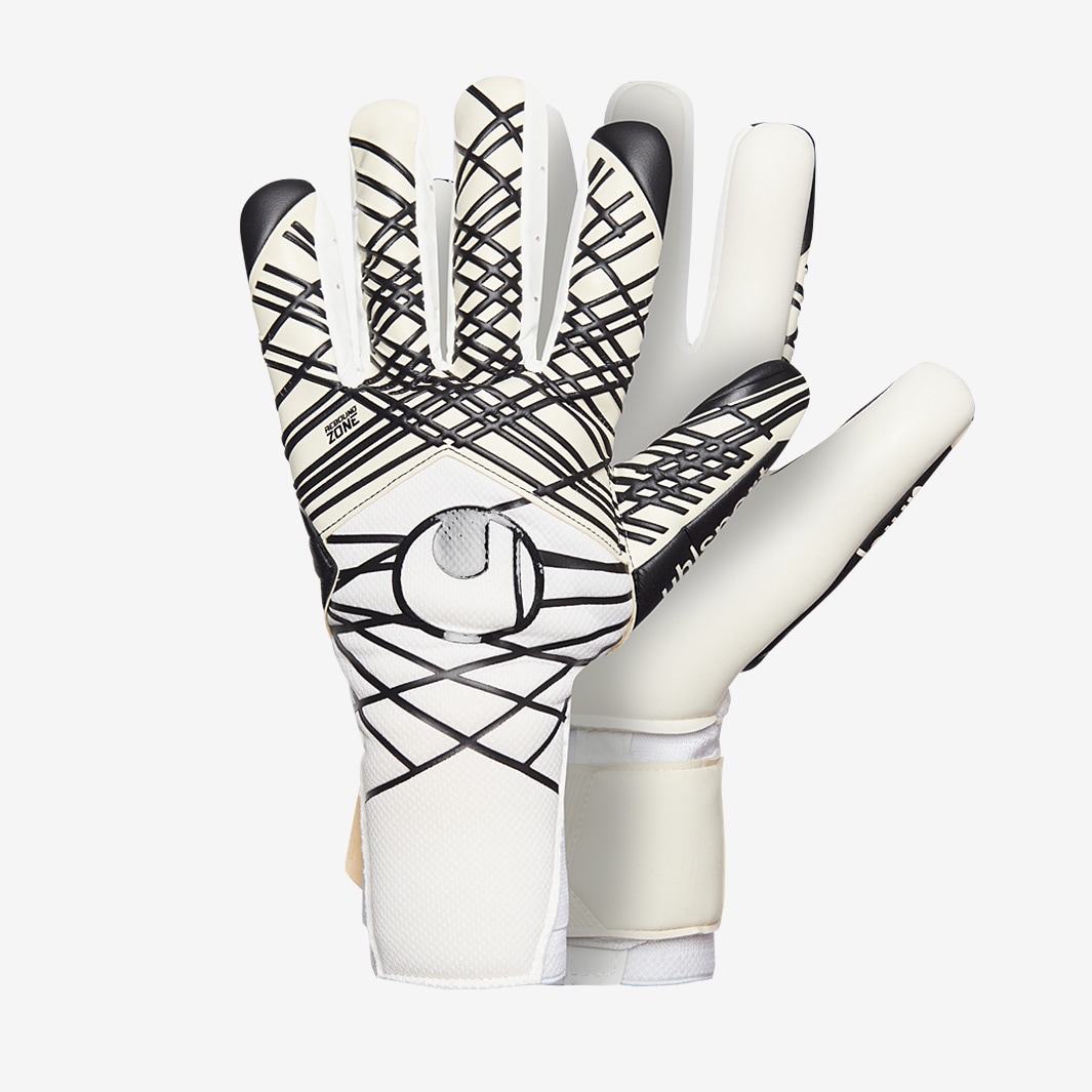 Read the game and take control with Uhlsport Kids Prediction Supersoft HN goalkeeper gloves in WhiteWhiteBlack, featuring a grip net structure on the backhand for improved flexibility and grip. The eyecatching lattice pattern allows natural flexion of the hand thanks to the placement of the grip lines, while also increasing ball contact for greater purchase on punches. On the palm, everpopular SUPERSOFT foam provides prolevel grip in both wet and dry conditions and cushions even the hardest shots. This versions a halfnegative cut with additional latex on the extremities of the backhand and the fingertips for extra coverage and control. At the wrist, Uhlsports DUAL FIX SYSTEM uses two straps for easier fastening and improved stability, so your gloves always feel secure and ready for action. Foam SUPERSOFT foam for enhanced cushioning and great grip in all conditions Cut HalfNegative inner seam construction ensures a tight fit and maximum ball control Glove Body Breathable and comfortable textile material Closure DUAL FIX SYSTEM innovative closure system for optimised fixation and maximum flexibility of the wrist REBOUND ZONE provides maximum flexibility and perfect punching FLEX ENTRY elastic entry guarantees maximum flexibility and wearing comfort