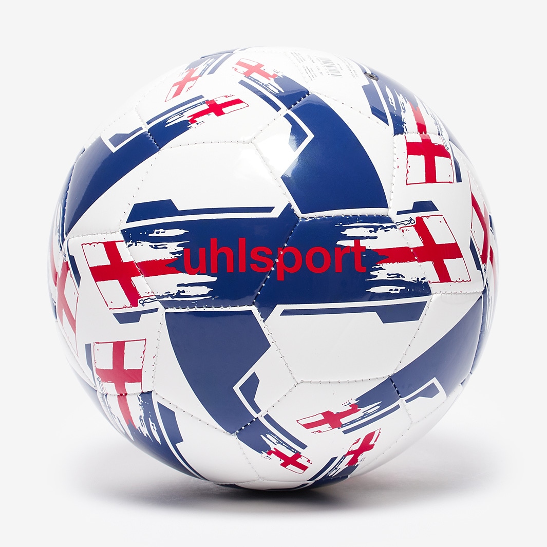 Show some patriotism while improving your skills, with the Uhlsport National Ball England Football in WhiteNavyRed which uses machine stitching for conformity. The Uhlsport National Ball England Football is made with a durable but soft material ideal for skills, tricks and training routines and features a 32panel construction. Excellent, machine stitched training and individual skill ball32 panel constructionLong lasting and soft thermoplastic polyurethane material with additional foam laminationHigh rebound butyle bladder for best air retention and playing characteristics